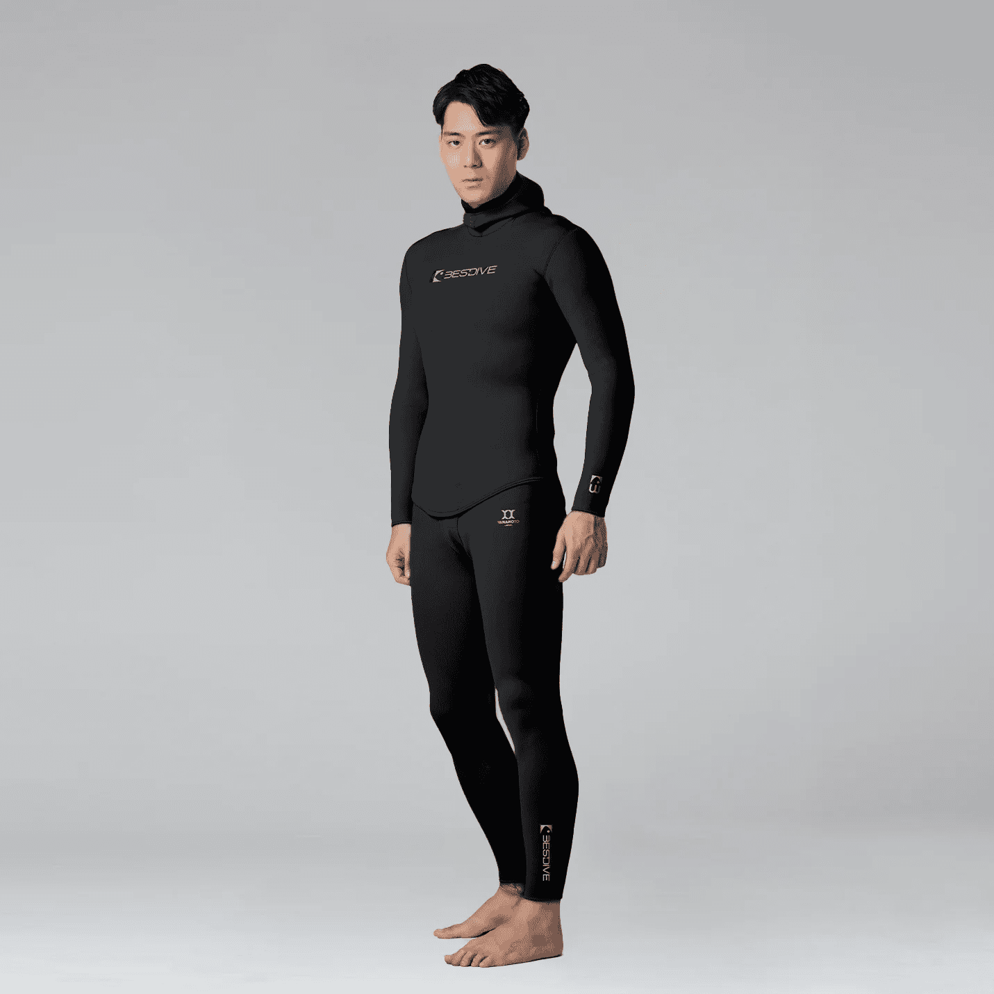 Practicality meets style with the two-piece design of our wetsuit. The hooded top and high-waisted pants provide a seamless and secure fit, ensuring maximum freedom of movement as you navigate through the underwater landscape. And with the reinforced Velcro beaver tail closure, you can trust that your wetsuit will stay in place, no matter how intense your dives become.
